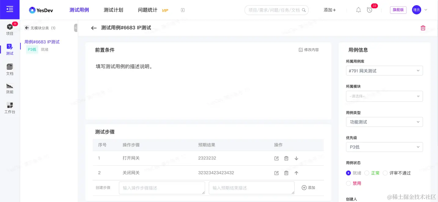 点击用例标题,进入到测试用例详情页。可以查看和编辑测试用例的详情信息。