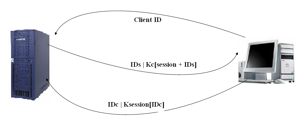 这里利用了MD5加密的时候理论上无法逆向生成明文的特性,在第三步验证服务器端的真实性,即默认服务器端才可以保存有用户设置的密码,第四步服务器端会通过对于用户ID的解密验证客户端不是假冒的,即即使一个假冒客户端知道有效的client ID,没有正确的密码也无法解密下次通讯需要的密码。这样,无需在两端传输密码信息,避免假冒客户端和假冒服务器的问题,基本保证系统的安全性。