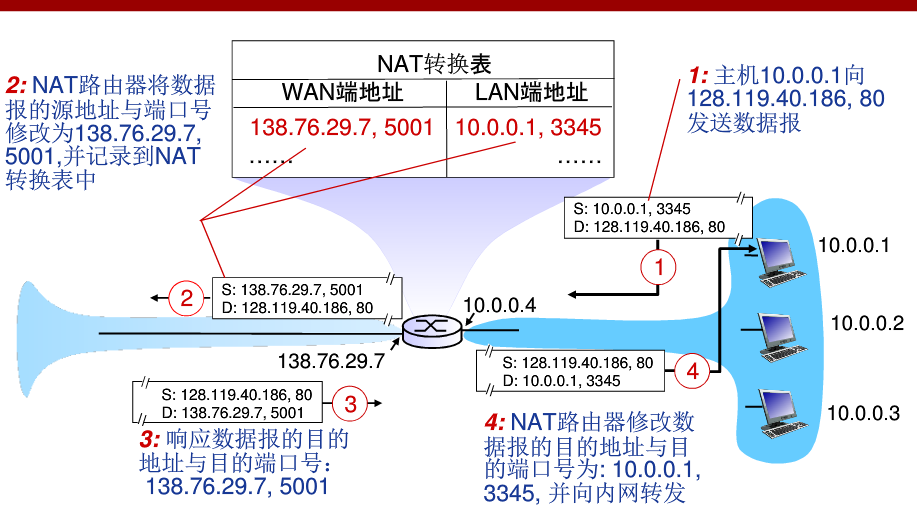 最后这里面存在一个争议:路由器是第三层设备(工作的最高层是网络层),但是在这里路由器读取了端口号信息,突破了网络层去访问了传输层。从设计上讲:这是不应该的。