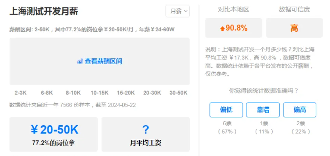 据统计,测试开发行业的平均薪资如下图(数据来源于权威招聘网):