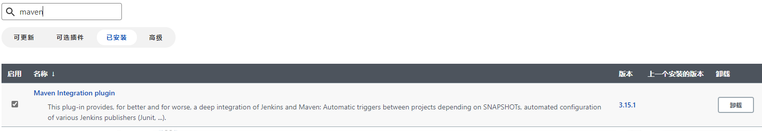 在系统管理-->插件管理中,搜索、安装 Maven Integration plugin 。