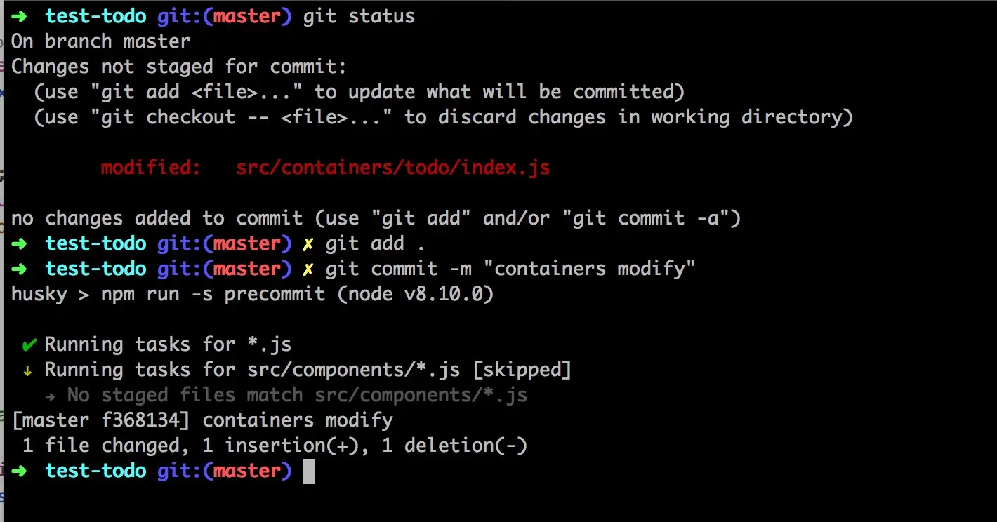 对containers中的文件进行修改,然后推进暂存区的时候,会进行eslint的检查,但是不会进行测试