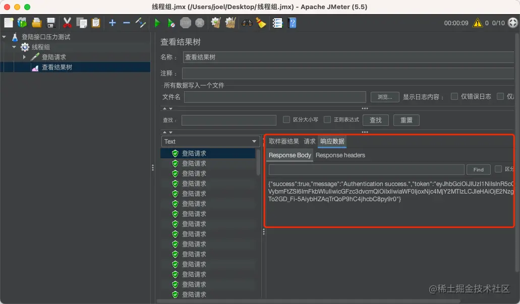 - 查看结果树:显示每个请求的响应,包括请求头、请求正文和响应正文。