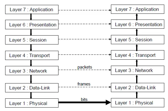 - Physical: Conveys the bit stream (electrical, light, radio)