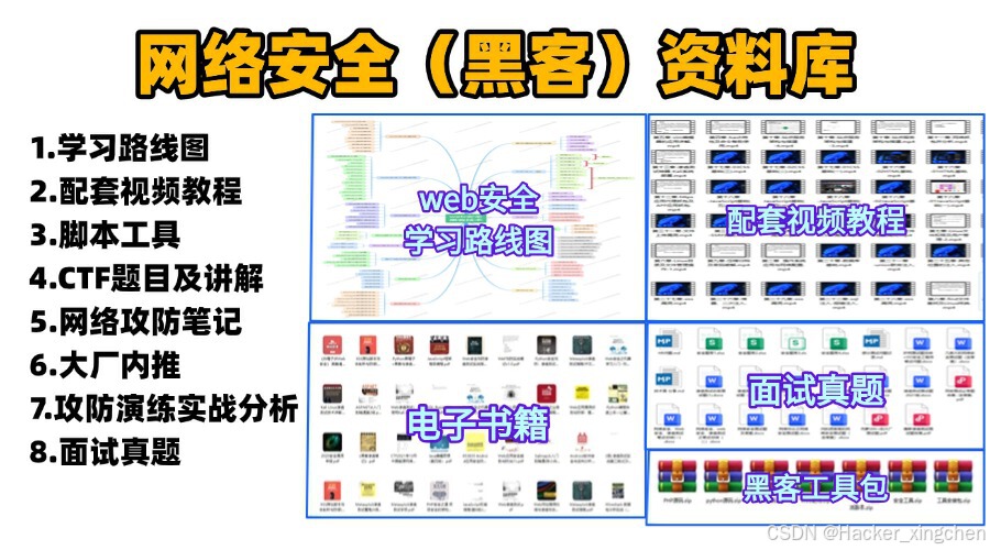 这些资料,对于【网络安全】的朋友来说应该是最全面最完整的备战仓库,这个仓库也陪伴上万个网络安全工程师们走过最艰难的路程,希望也能帮助到你!有需要的小伙伴可以点击下方小卡片领取