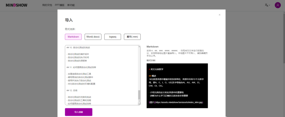1、打开地址:https://mindshow.fun/ , 把上述生成的内容复制到MindShow工具中,