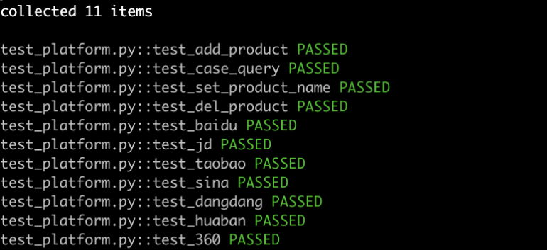 如上是一个产品模块中完整的测试用例,包含了增删改查的API测试用例,执行后的耗时以及结果信息如下:
