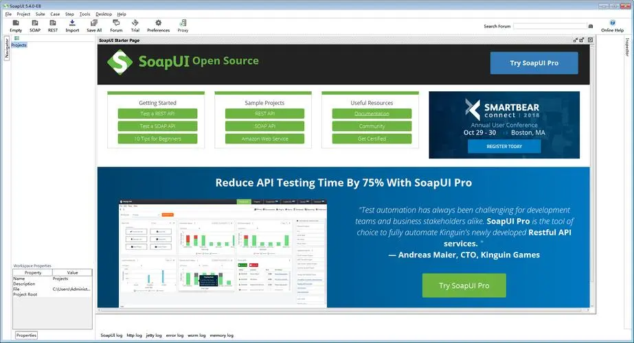 soapUI是一个开源测试工具,通过soap/http来检查、调用、实现Web Service的功能/负载/符合性测试。