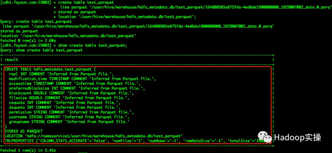 location '/user/hive/warehouse/hdfs_metadata.db/test_parquet';