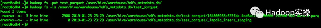 将parquet文件put到/user/hive/warehouse/hdfs_metadata.db目录下