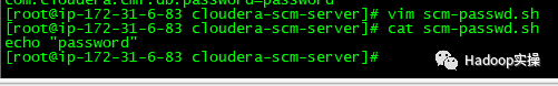 1.在/etc/cloudera-scm-server/目录下创建一个脚本文件scm-passwd.sh,输入CM的数据库密码