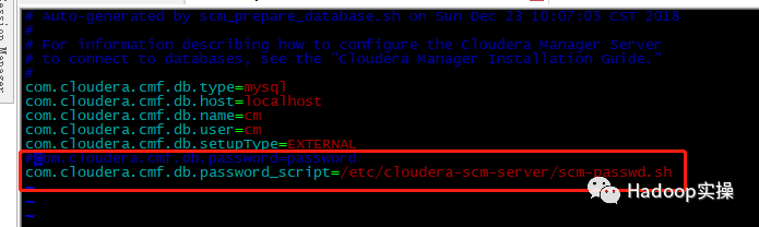 3.CM运行时,如果/etc/cloudera-scm-server/db.properties文件中不包含com.cloudera.cmf.db.password_script属性,系统会开始查找com.cloudera.cmf.db.password属性的值。