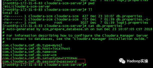 1.Cloudera Manager的数据库密码默认以明文的方式保存在单独的文件中,该文件的权限较小(600),只有root和cloudera-scm用户才能查看。