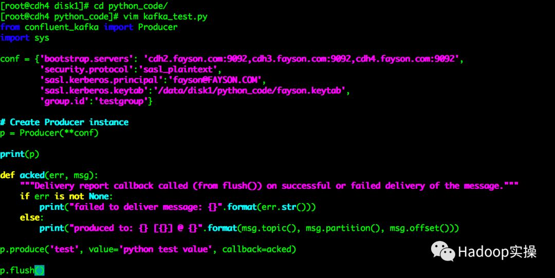 1.如下为Python2访问Kerberos环境下Kafka示例代码