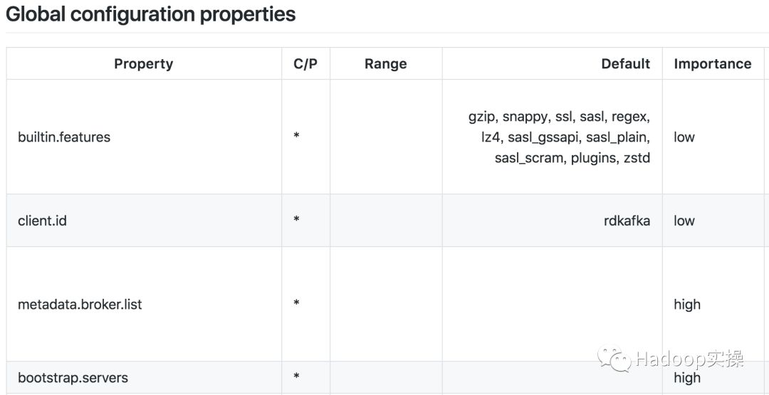 https://github.com/edenhill/librdkafka/blob/master/CONFIGURATION.md