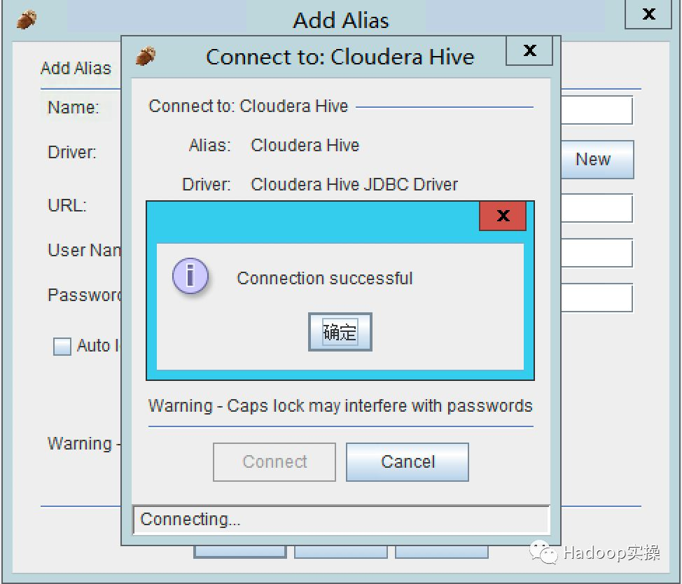5.点击“Connect”连接CDH的Hive库,如下显示为连接成功