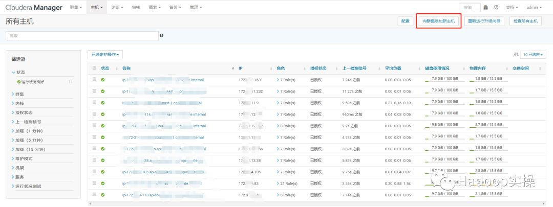 1.在CDH6.0中,点击“主机”->“所有主机”->“向群集添加新主机”,会出现异常如下: