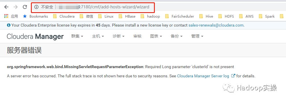 如本文所述CDH6.0.0在进行集群扩容加入机器的时候,“向群集添加新主机”页面会无法正常显示,直接报错,根据报错是找不到clusterId,我们在浏览器直接传入clusterId参数后访问正常,集群的clusterId可以到CM的数据库中进行查询。这可能是6.0.0的bug,不清楚最新的6.0.1有没有修复。