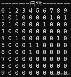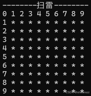 mine[ROWS][COLS]:存储地雷位置的棋盘。show[ROWS][COLS]:展示给用户的棋盘。