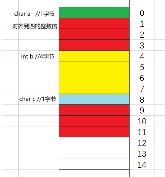而且在int的内存分配开始的偏移量也要时四的倍数,而char只需要为1的倍数