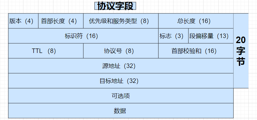 目标地址(32):目标ip地址,表示接收端的IP地址