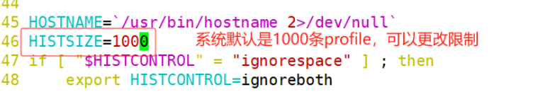 HISTSIZE=1000 系统默认是1000条profile, 修改限制命令