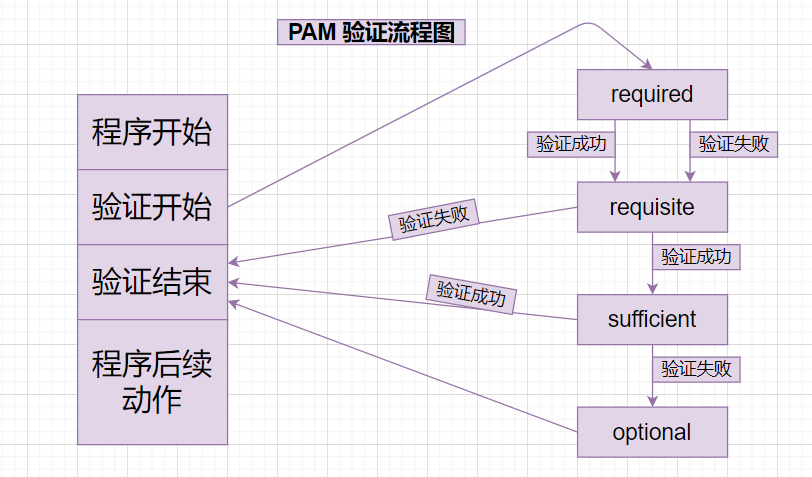 PAM认证一般遵循这样的顺序:Service(服务)→PAM(配置文件)→pam_*.so