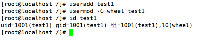 usermod -G wheel test1