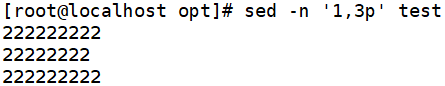 sed -n '1,3p' test #打印出第一排到第三排的内容