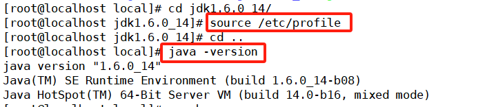[root@localhost jdk1.6.0_14] source /etc/profile