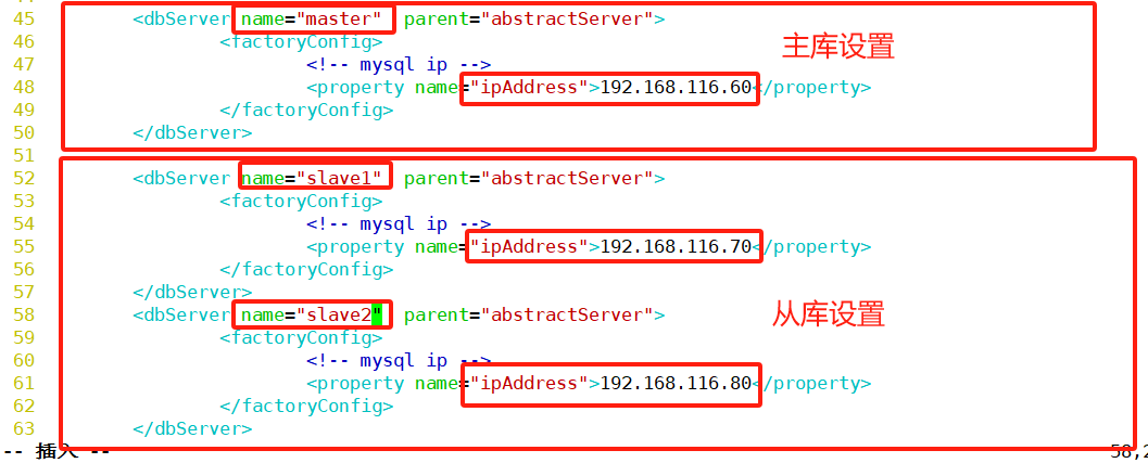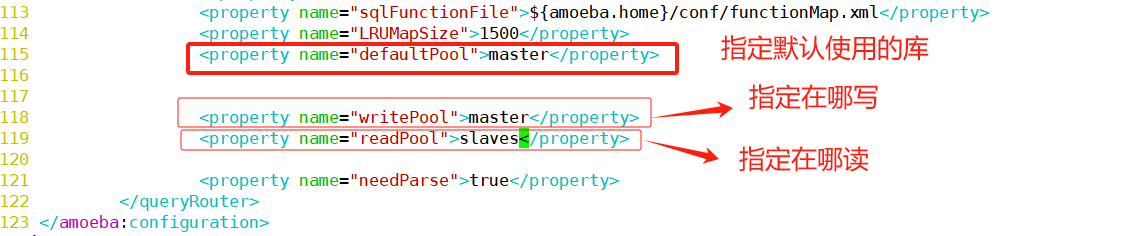 115 <property name="defaultPool">master</property>#指定默认使用的库