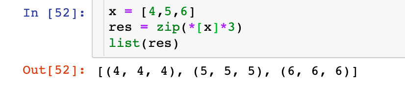 [x]是一个列表中含有列表,x本身就是一个列表[x]*3结果为[x,x,x],实际上也是[[4,5,6],[4,5,6],[4,5,6]][*[x]*3]的结果则为[(4,4,4),(5,5,5),(6,6,6)]