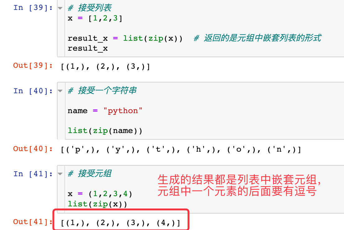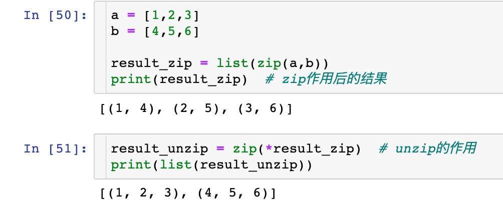 - 函数执行的结果在Python3中返回的是一个zip对象,如果需要展示成列表的形式,直接使用list方法展开;展开的结果是列表中嵌套元组的形式