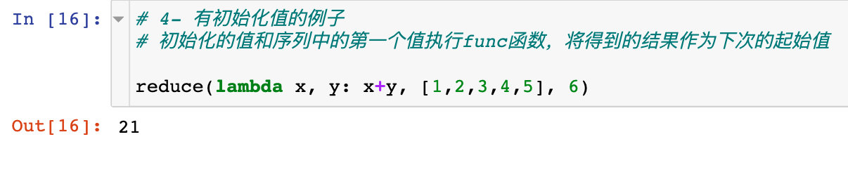 初始化值和序列中的第一个值执行func函数,将得到的结果作为下次的起始值