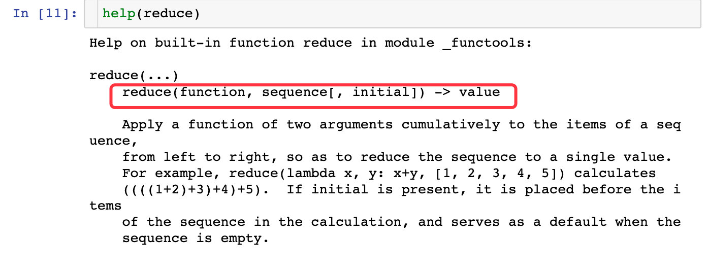 第一次调用function时,如果提供initial参数,会以sequence中的第一个元素和initial作为参数调用function,否则会以序列sequence的第一个数