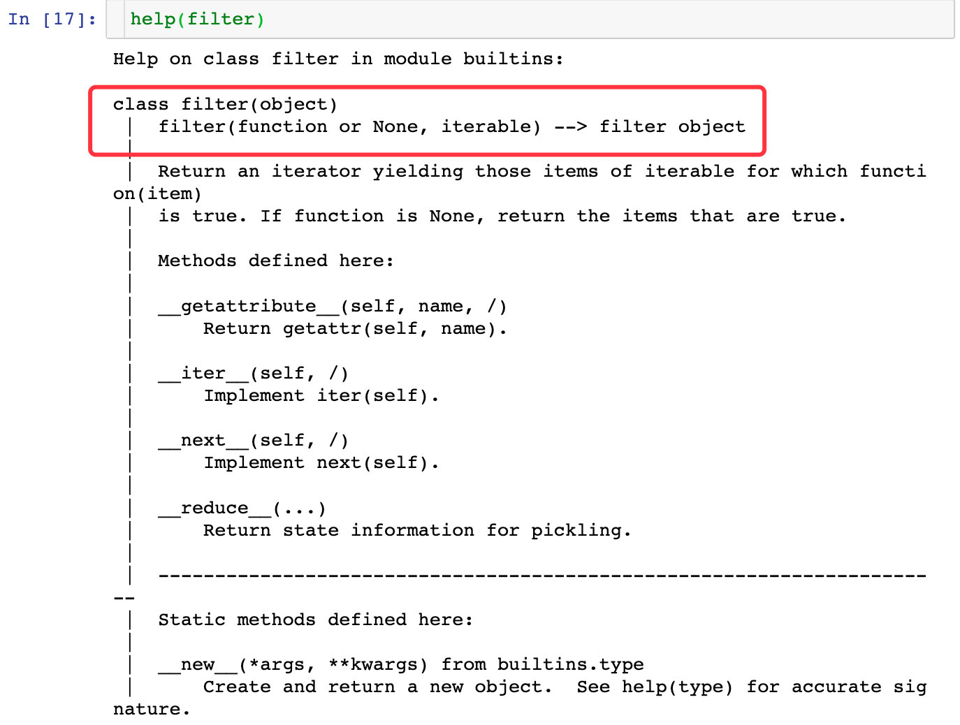 filter(function, iterable) # 前者为函数,后者为待执行的序列