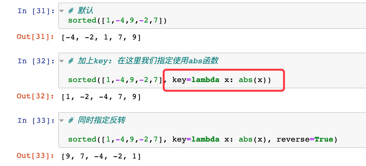 key参数的作用是我们自定义一个函数,然后通过将序列中的元素作用于函数之后再进行排序