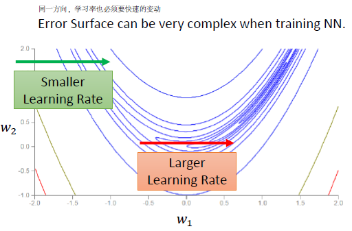 - 不存在一个one-size-fit-all的学习率,不同的参数需要选择不同的学习率。
