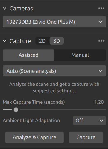 捕获按钮 Capture:会直接使用辅助捕获建议的设置执行捕获,无需额外的场景分析。