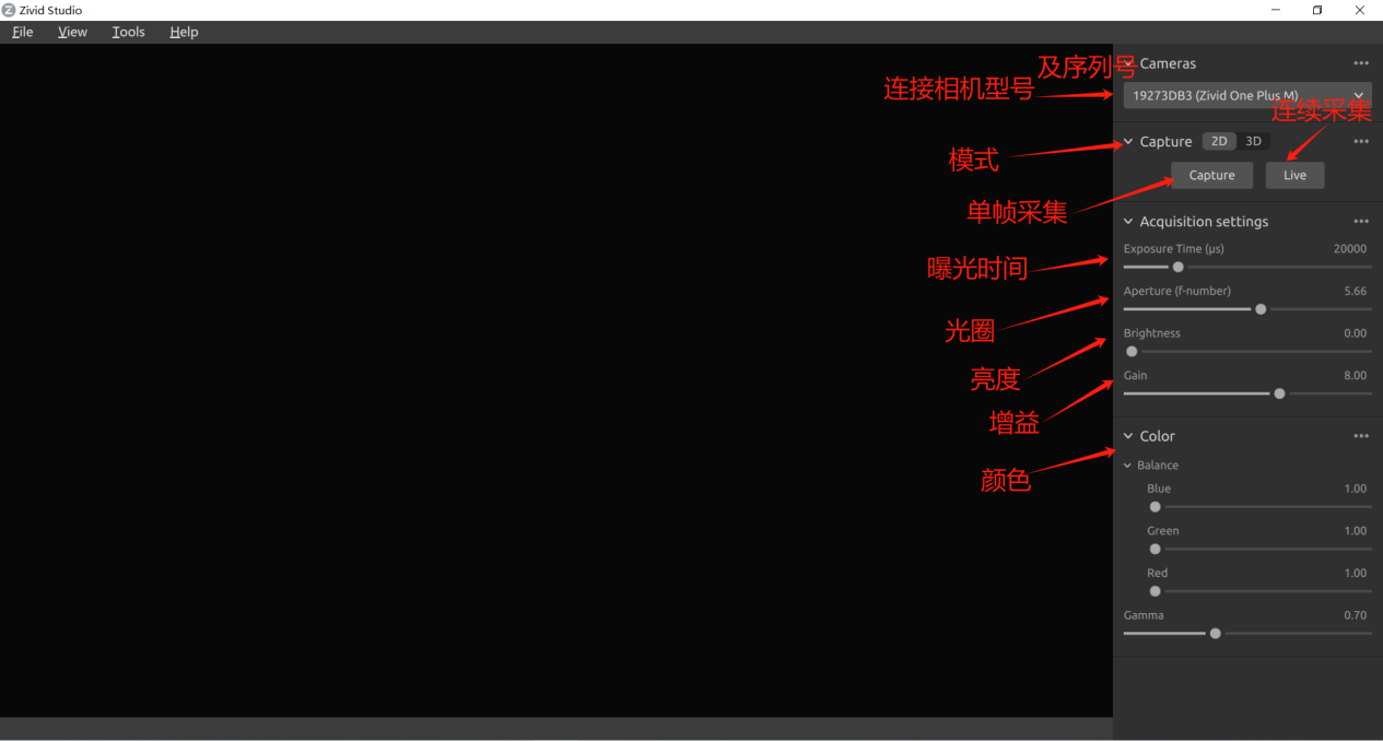 捕获或加载 ZDF 文件后,此视图将显示该场景的彩色 2D 图像。