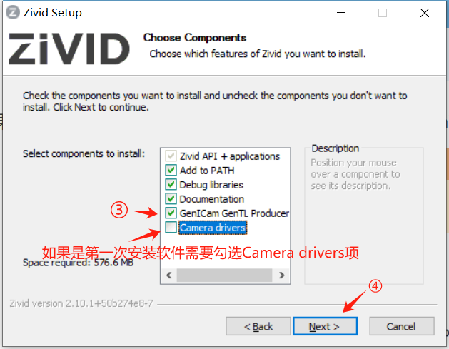 如果第一次安装需要勾选Camera drivers项,安装摄像头驱动