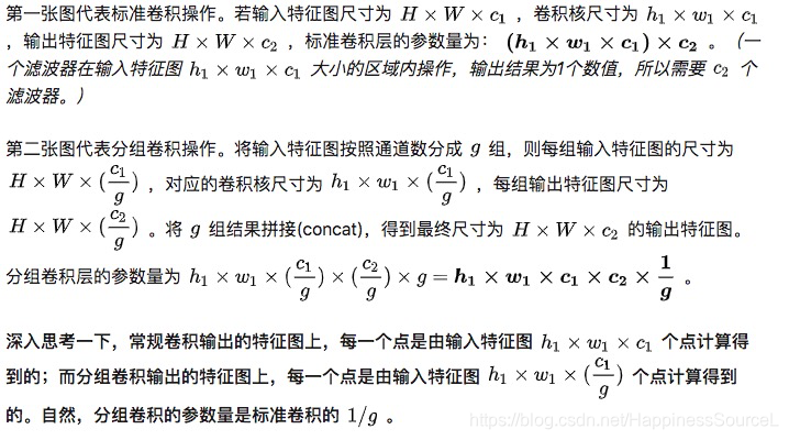 在实际实验中,同样的网络结构下,这种分组的卷积效果是好于未分组的卷积的效果的。