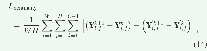 光谱重建测量在RGB图像的光谱SR中具有重要意义。 由于HSI中各波段的光谱成像范围比RGB图像窄,因此每个像素不仅包含空间信息,而且在光谱维度上表现出连续性。 因此,提出了光谱连续性损失来抑制谱域中各向量的跳跃现象,使得相邻频带的光谱特征更加相似: