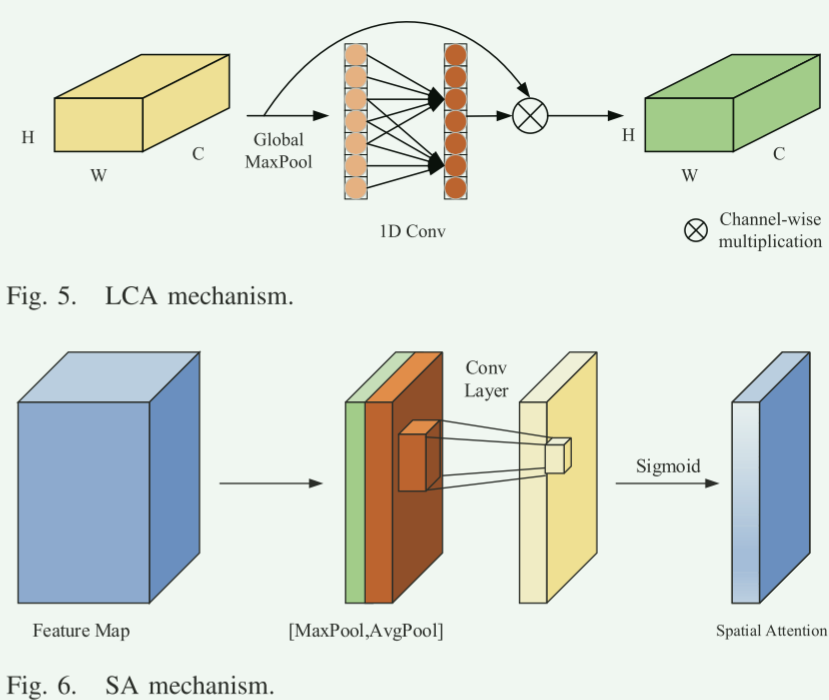 首先堆叠三层卷积+ReLU,采用Cheap Conv。由于轻量级网络的深度和参数均小于常规光谱SR网络,可能直接导致网络的特征提取能力不足,重建图像的纹理细节较差,甚至出现不同程度的光谱失真。 因此,在 LFEM 中进一步设计了 LCA 和空间注意(SA)机制,以强调谱重建感兴趣的特征
