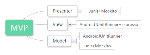 在该项目中,MVP各层所使用的单元测试框架如下图所示: