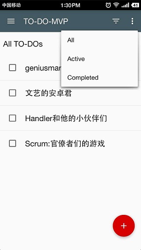 接下来我们以TO-DO List页面(TasksActivity/TaskFragment)中加载任务列表功能为例,此场景的功能界面如下图所示: