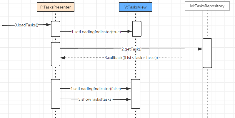 在这个功能里,Presenter只做了一件事情,就是loadTask(),时序图如下所示: