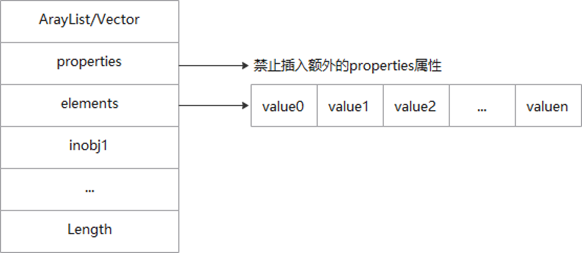 在方舟开发框架中,构造容器类对象模型的流程如下图所示,在运行时禁止再向对象上添加Properties属性,ArrayList借用对象模型中的elements位置存储元素。