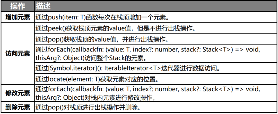 Stack可用来构造栈对象,存储元素遵循后进先出的规则。Stack依据泛型定义,要求存储位置是一片连续的内存空间,初始容量大小为8,并支持动态扩容,每次扩容大小为原始容量的1.5倍。Stack底层基于数组实现,入栈出栈均从数组的一端操作,Stack进行增、删、改、查操作的相关API如下: