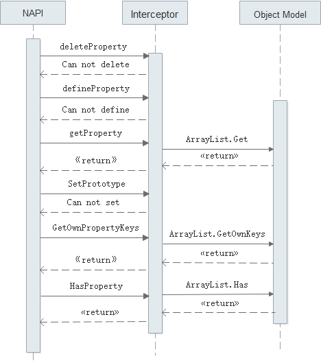拦截器处理,是指通过禁止掉一些影响对象行为的操作,比如delete、setPrototype等,在运行时(Runtime)维护一个高效的容器类对象。如图4所示,以ArrayList为例,ArkCompiler内部拦截的操作主要涉及DeleteProperty、DefineProperty、GetProperty、SetPrototype、GetOwnPropertyKeys、HasProperty等操作限制数组的holy添加,以及更改属性的attributes等操作,保证了不需要做JSArray必须做的holy 判断、writable 判断等操作。